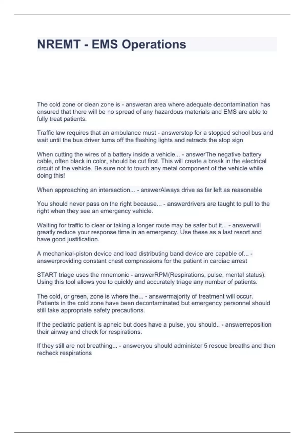 A BUNDLE SET OF NREMT EXAMS WITH QUESTION S AND ANSWERS 100% CORRECT