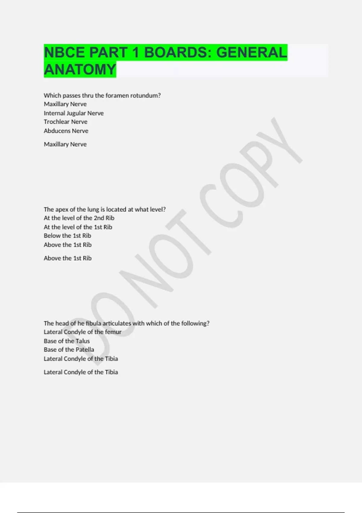 NBCE PART 1 BOARDS GENERAL ANATOMY.