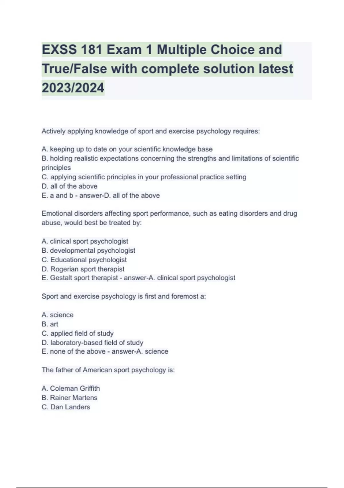 EXSS 181 Exam 1 Multiple Choice and True/False with complete solution latest 2023/2024
