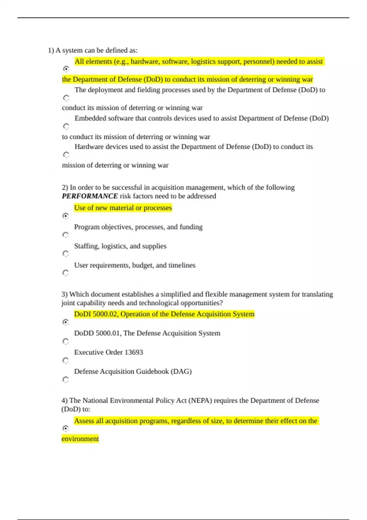ACQ 101 Exams AND CORRECT ANSWERS all defense acquisition university