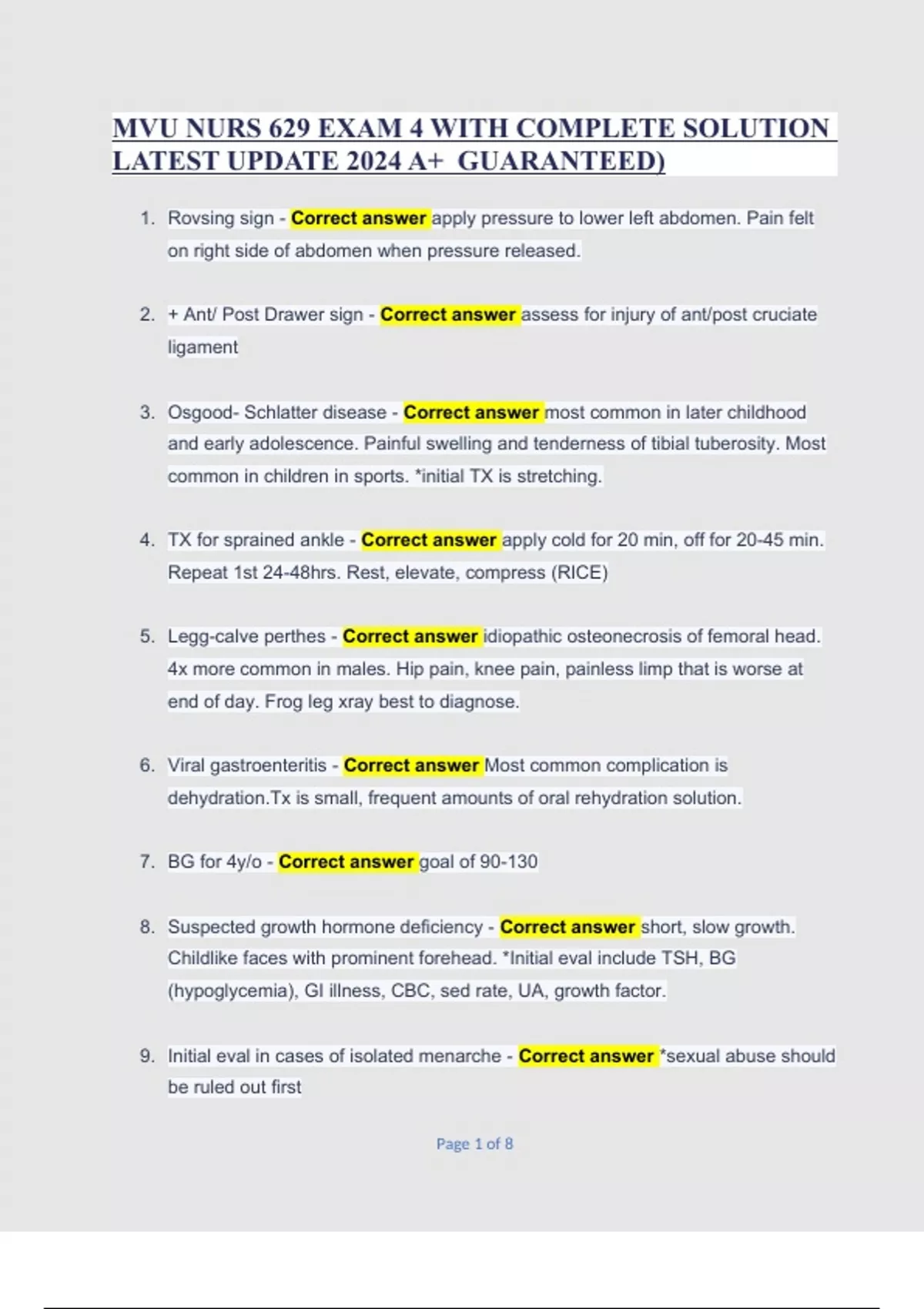 MVU NURS 629 EXAM 4 WITH COMPLETE SOLUTION LATEST UPDATE 2024 A+ GUARANTEED)