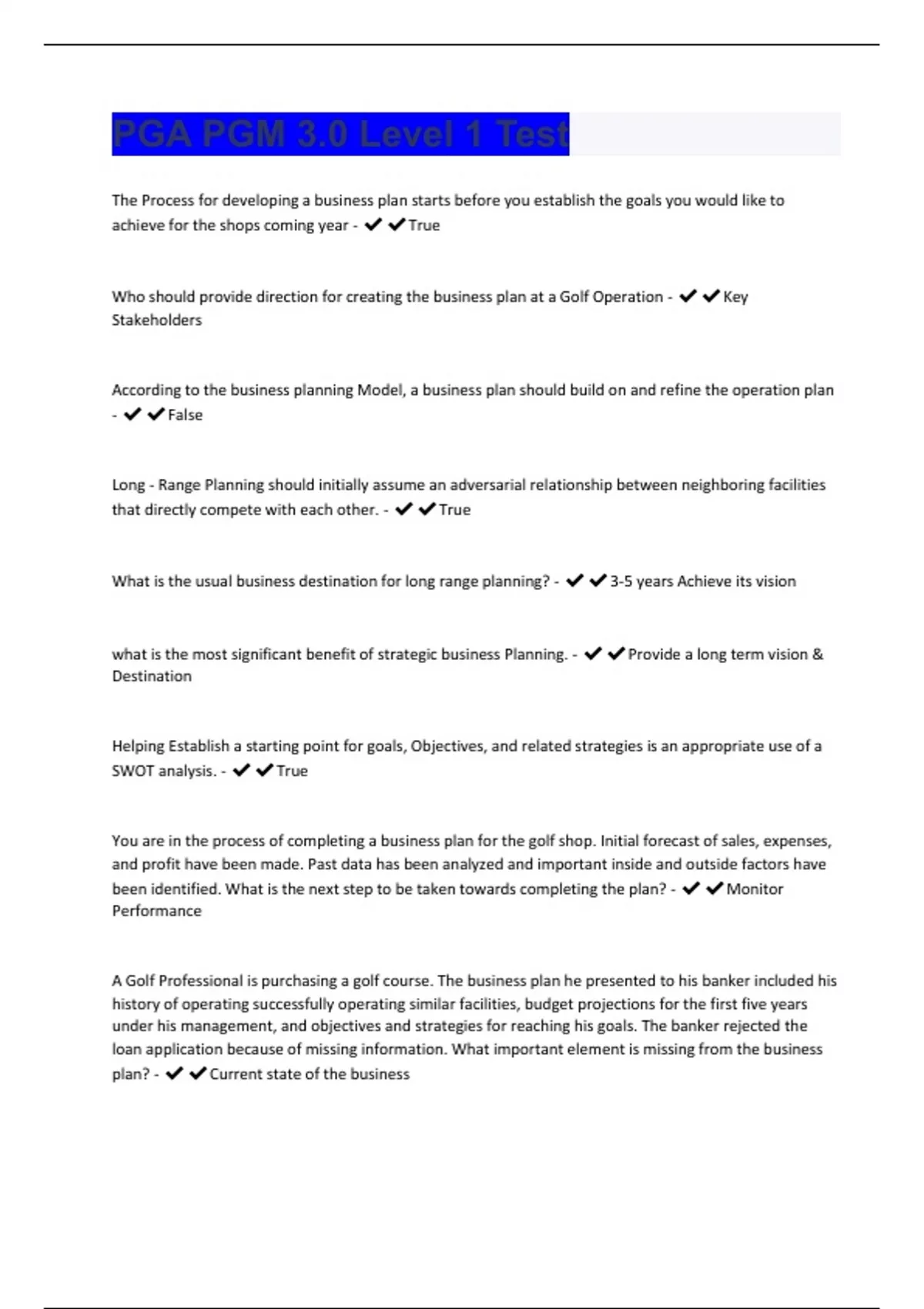 PGA PGM 3.0 Level 1 Test Exam Questions With Complete Solutions.