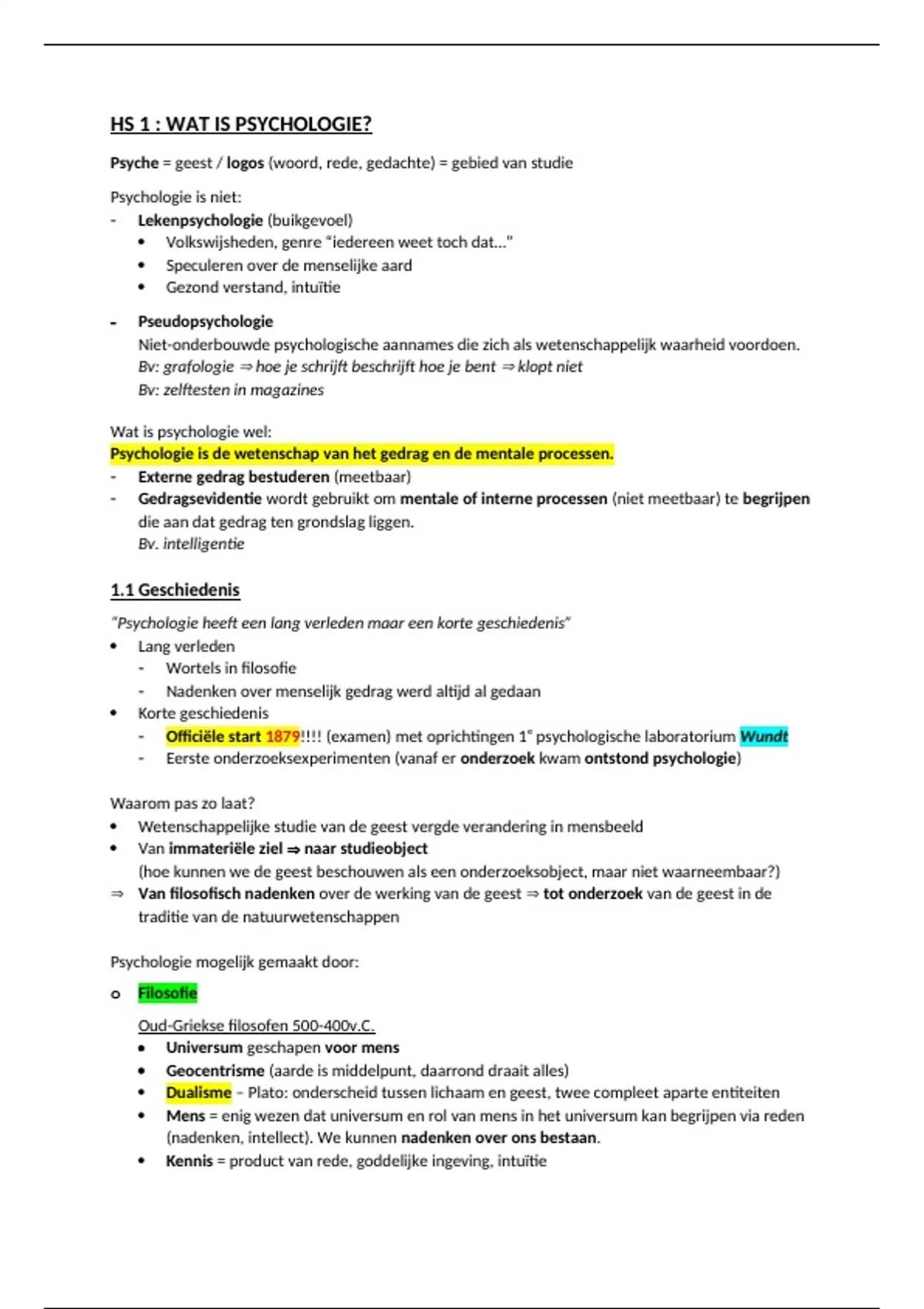 HS 1 : WAT IS PSYCHOLOGIE?