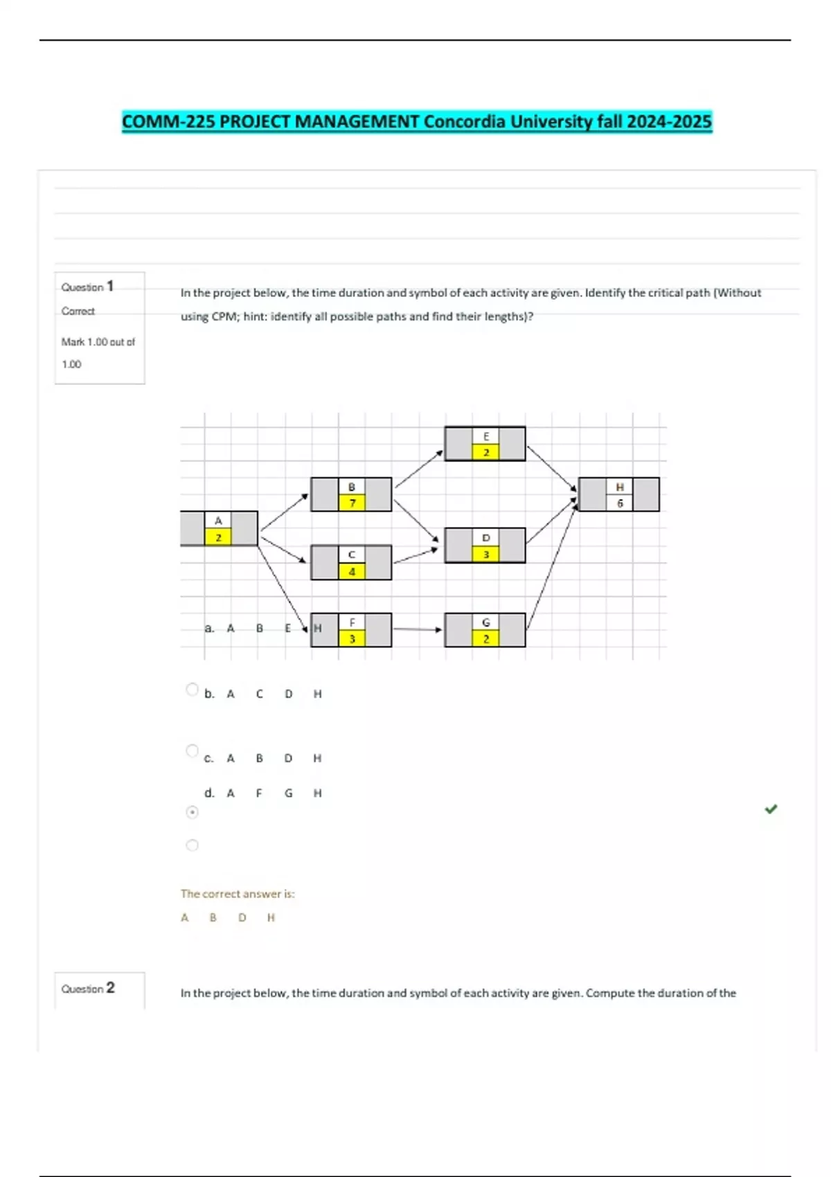 Correct using CPM; hint: identify all possible paths and find their lengths)?