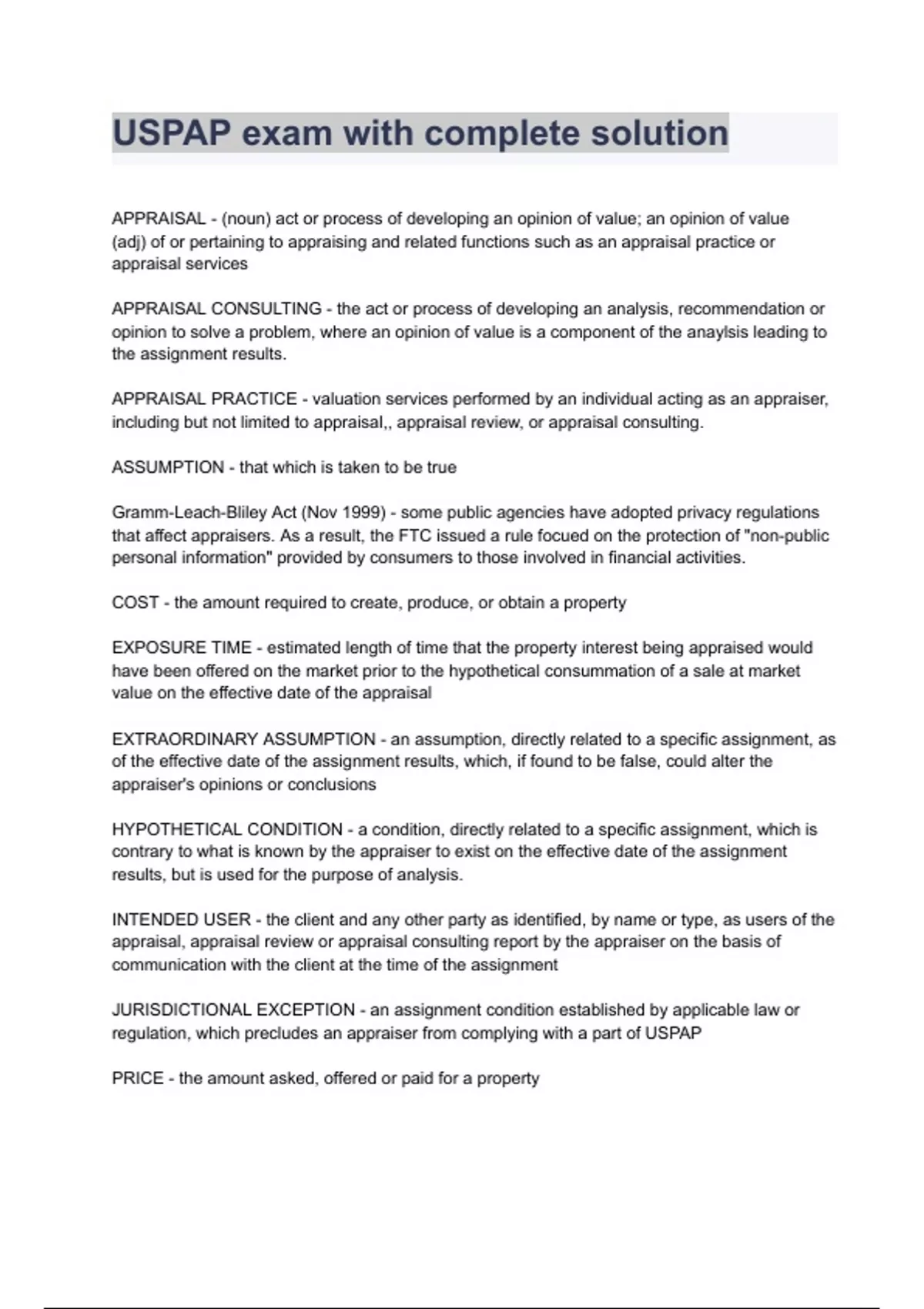USPAP exam with complete solution