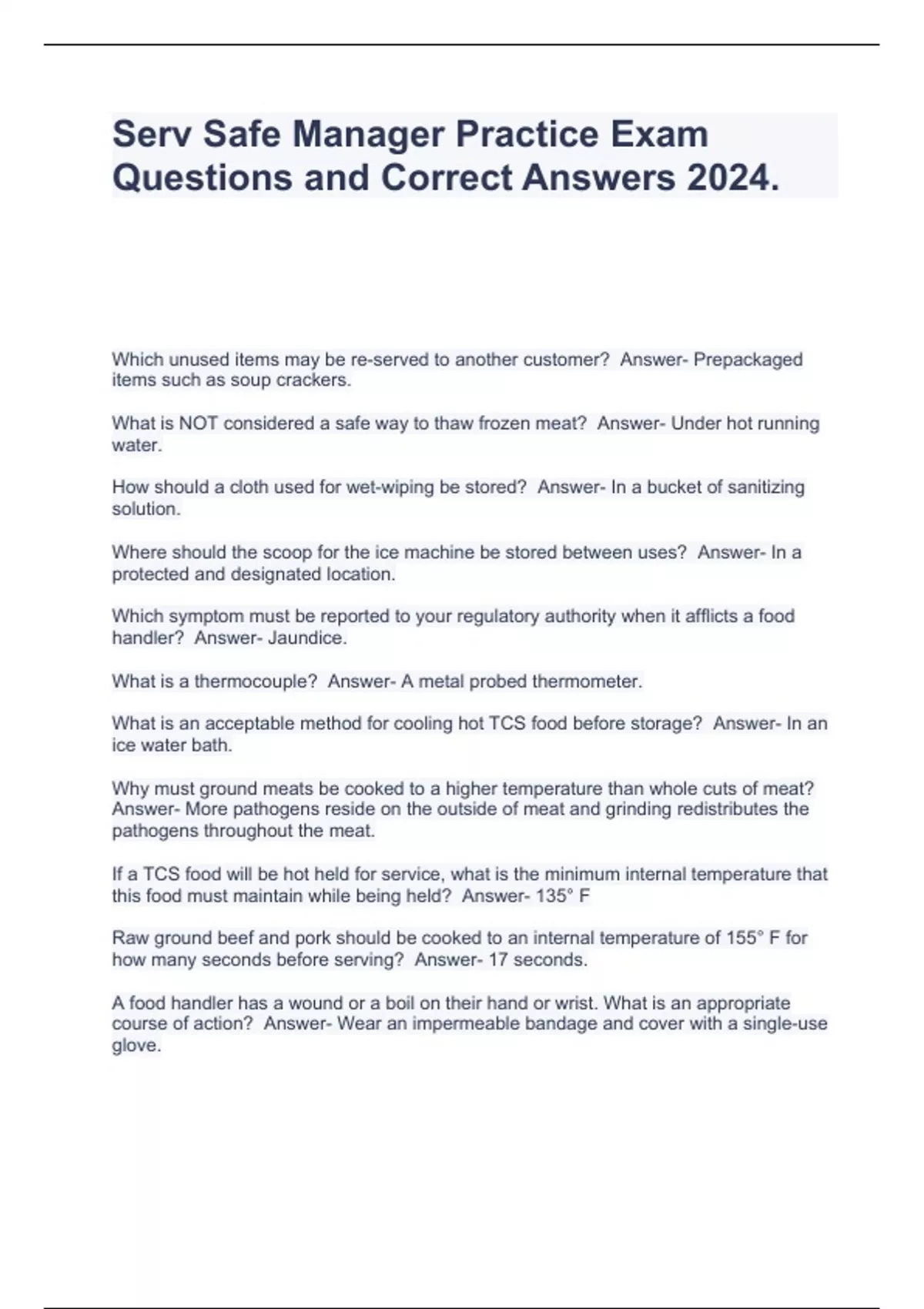 Serv Safe Manager Practice Exam Questions and Correct Answers 2024.