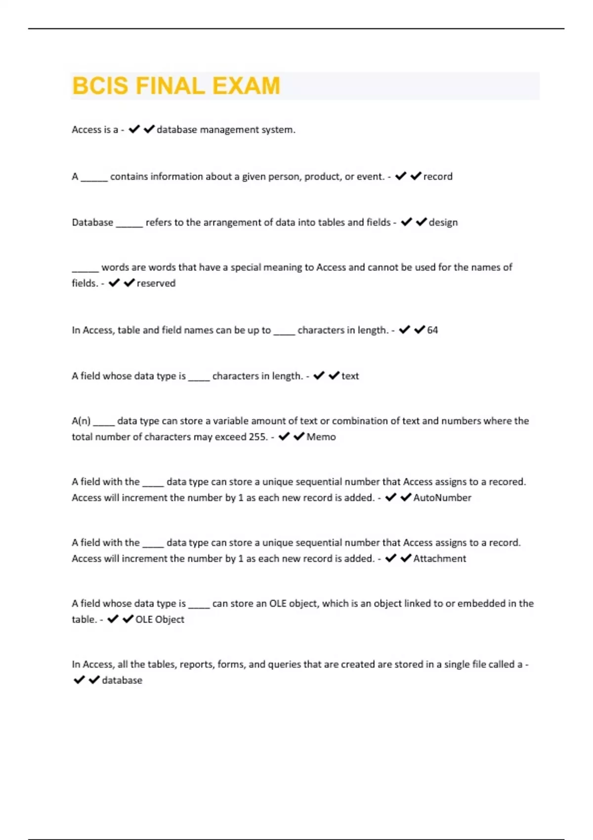 BCIS FINAL EXAM QUESTIONS WITH100 % CORRECT ANSWERS | VERIFIED