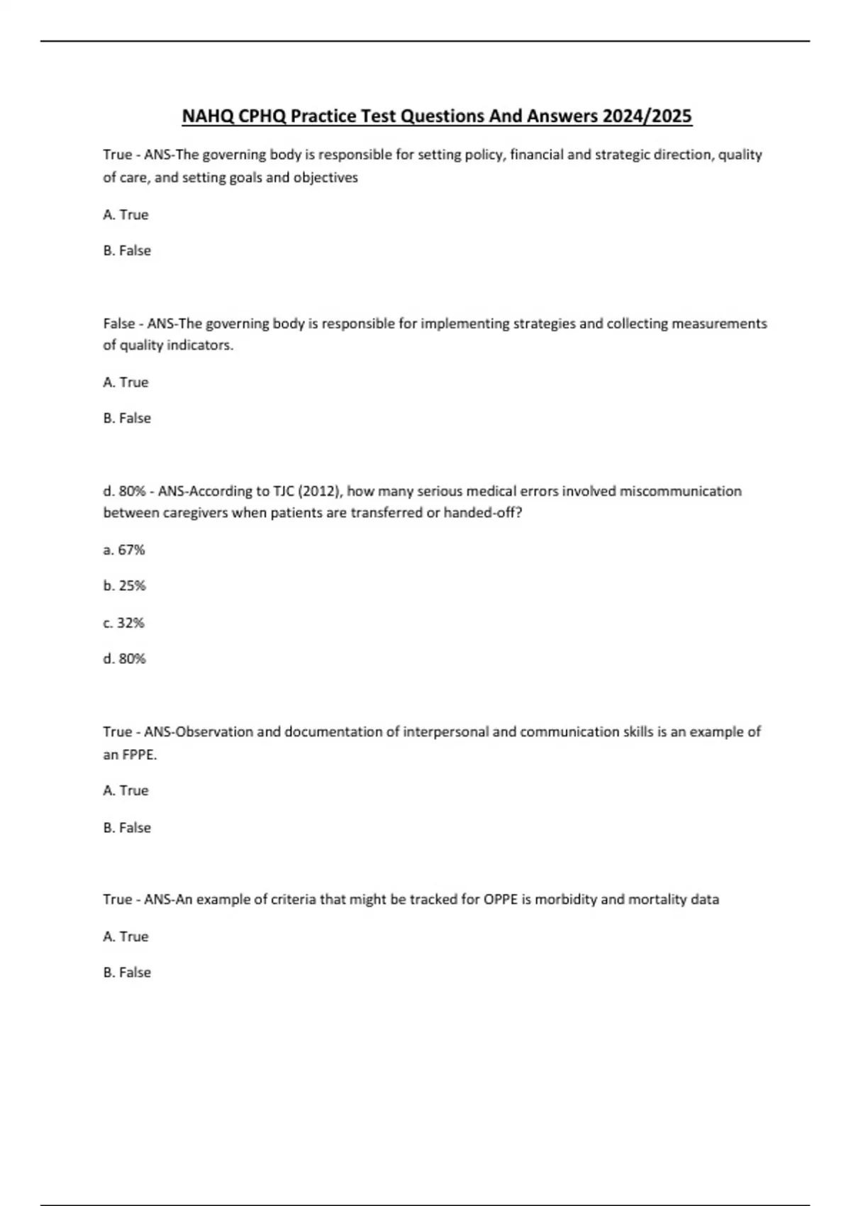 NAHQ CPHQ Practice Test Questions And Answers 2024/2025