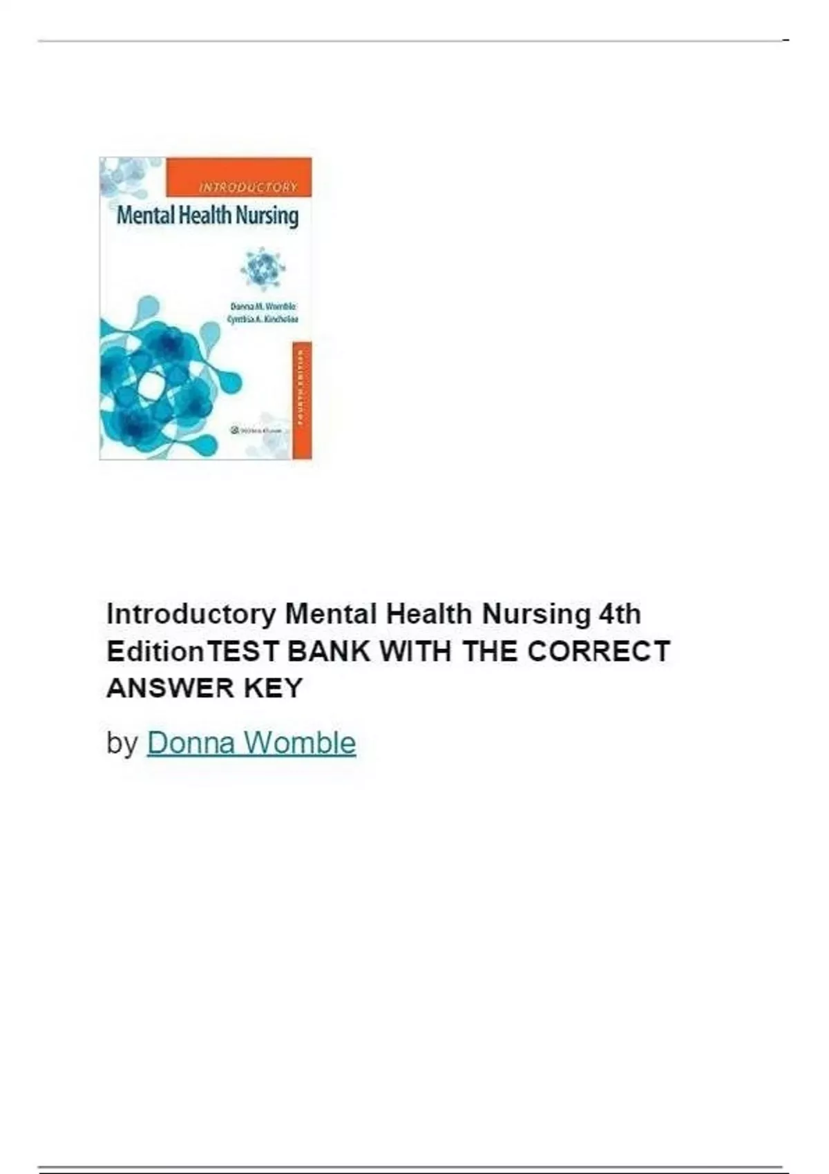 Test Bank for Introductory Mental Health Nursing 4th Edition by Womble Kincheloe 2024