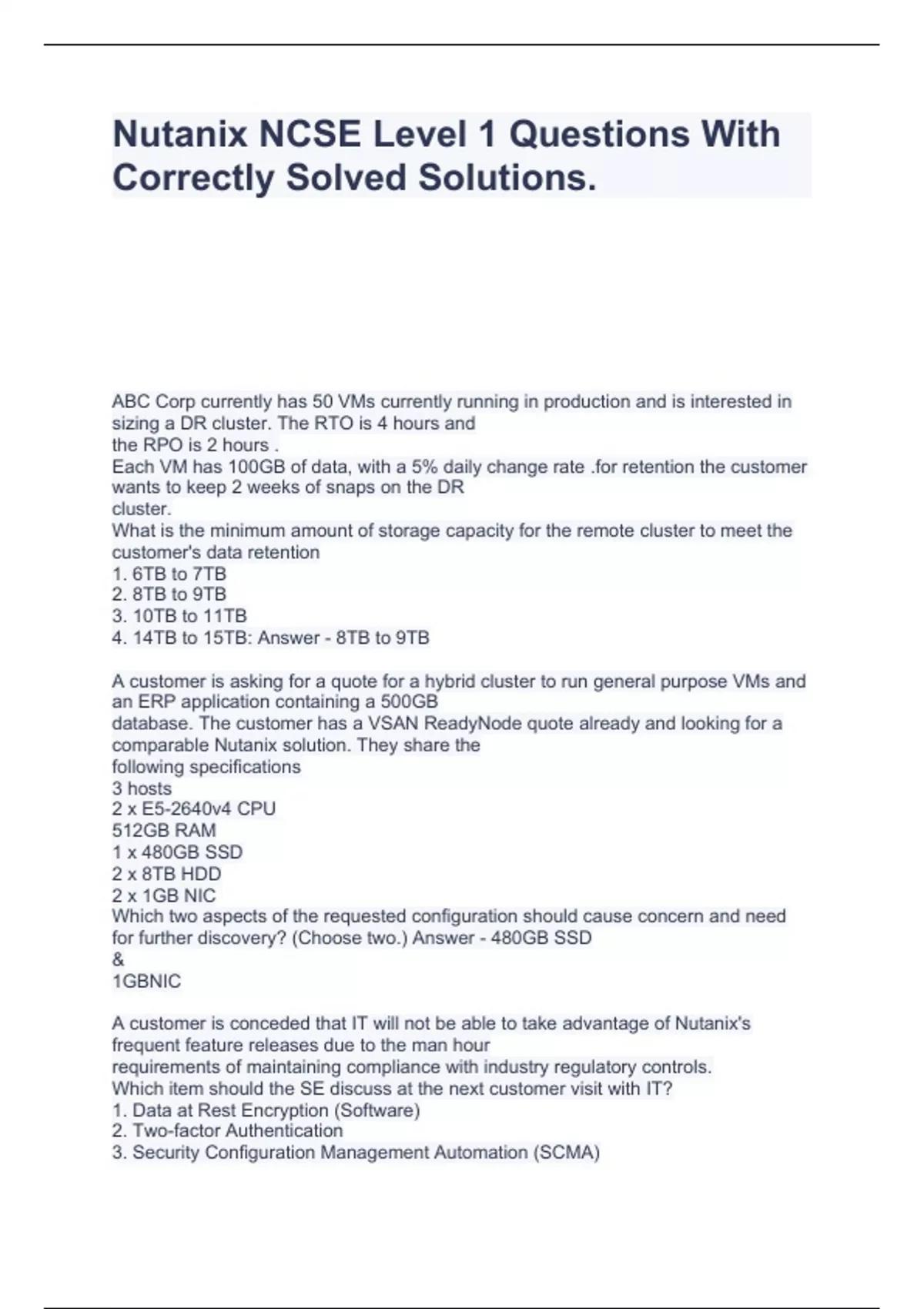 Nutanix NCSE Level 1 Questions With Correctly Solved Solutions.