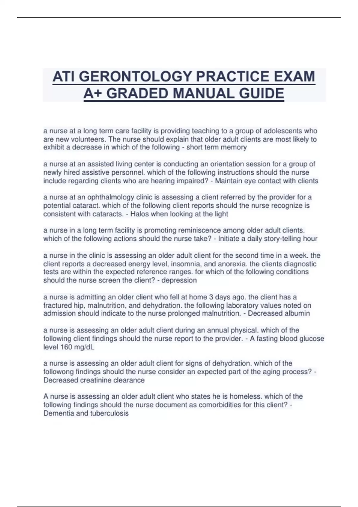 ATI GERONTOLOGY PRACTICE EXAM A+ GRADED MANUAL GUIDE