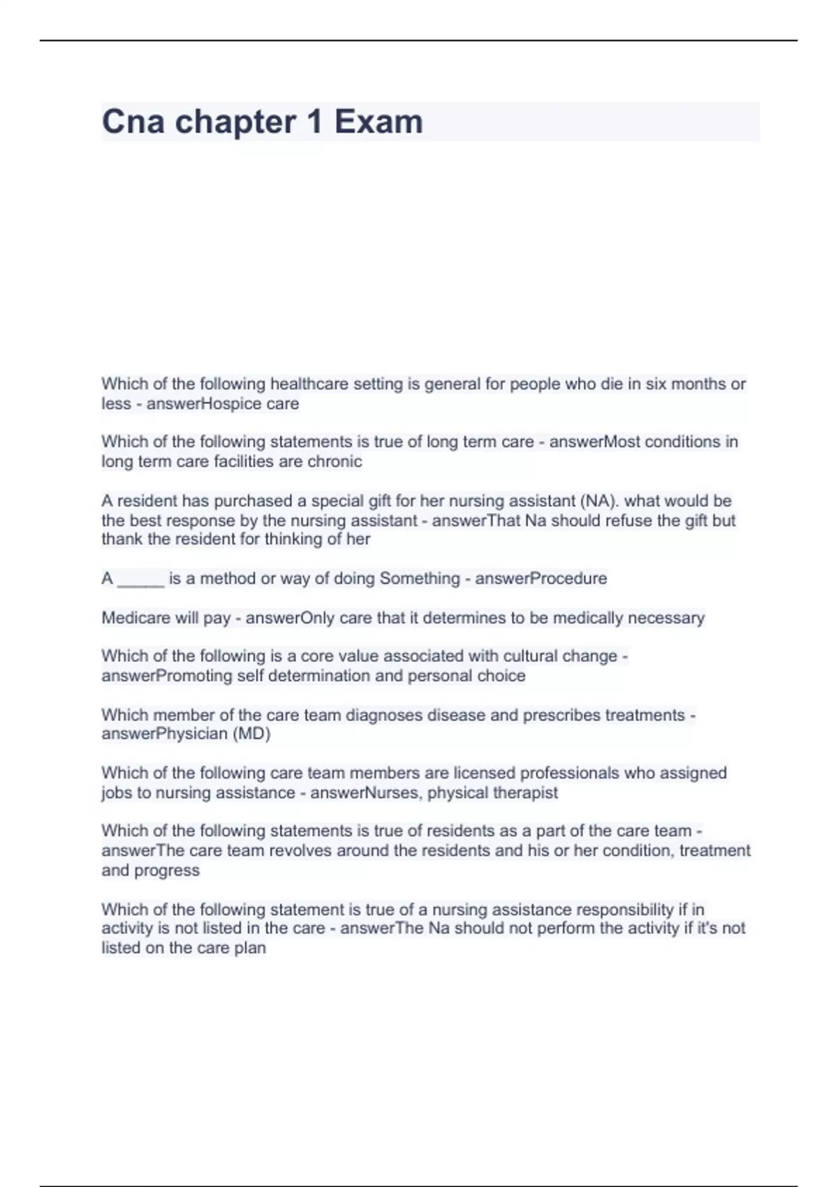 Exam of 3 pages for the course cna at cna (Cna chapter 1 Exam)