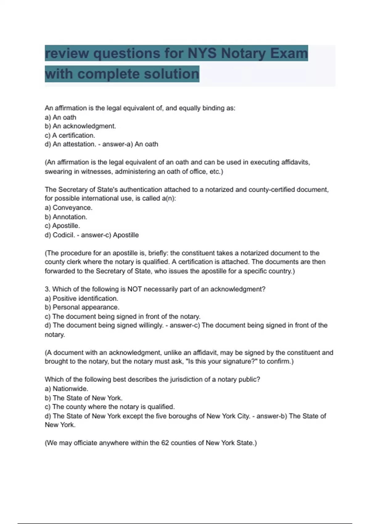 - Revew qustions for NYS Notary Exm with complete