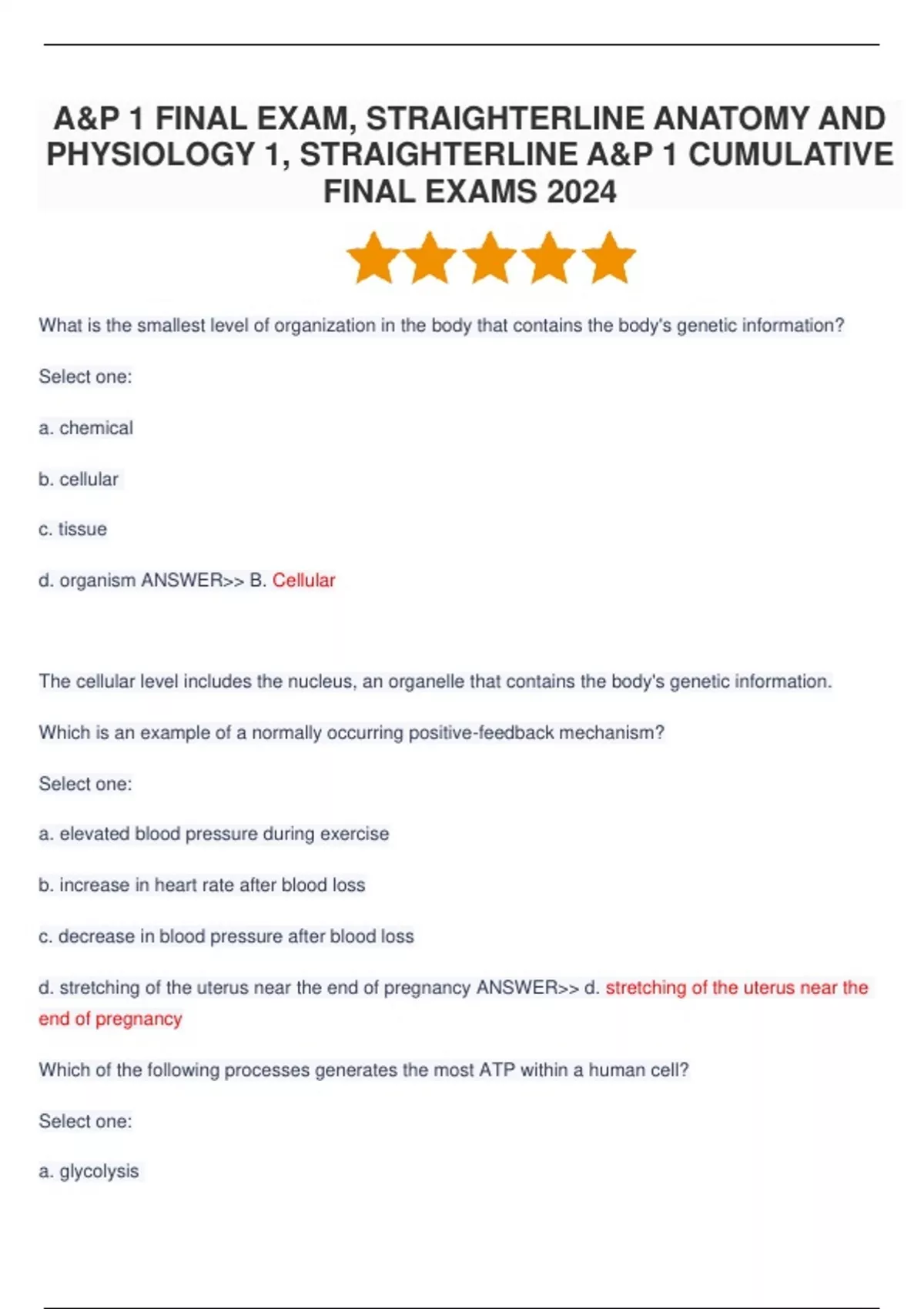 A&P 1 FINAL EXAM, STRAIGHTERLINE ANATOMY AND PHYSIOLOGY 1, STRAIGHTERLINE A&P 1 CUMULATIVE FINAL EXAMS 2024