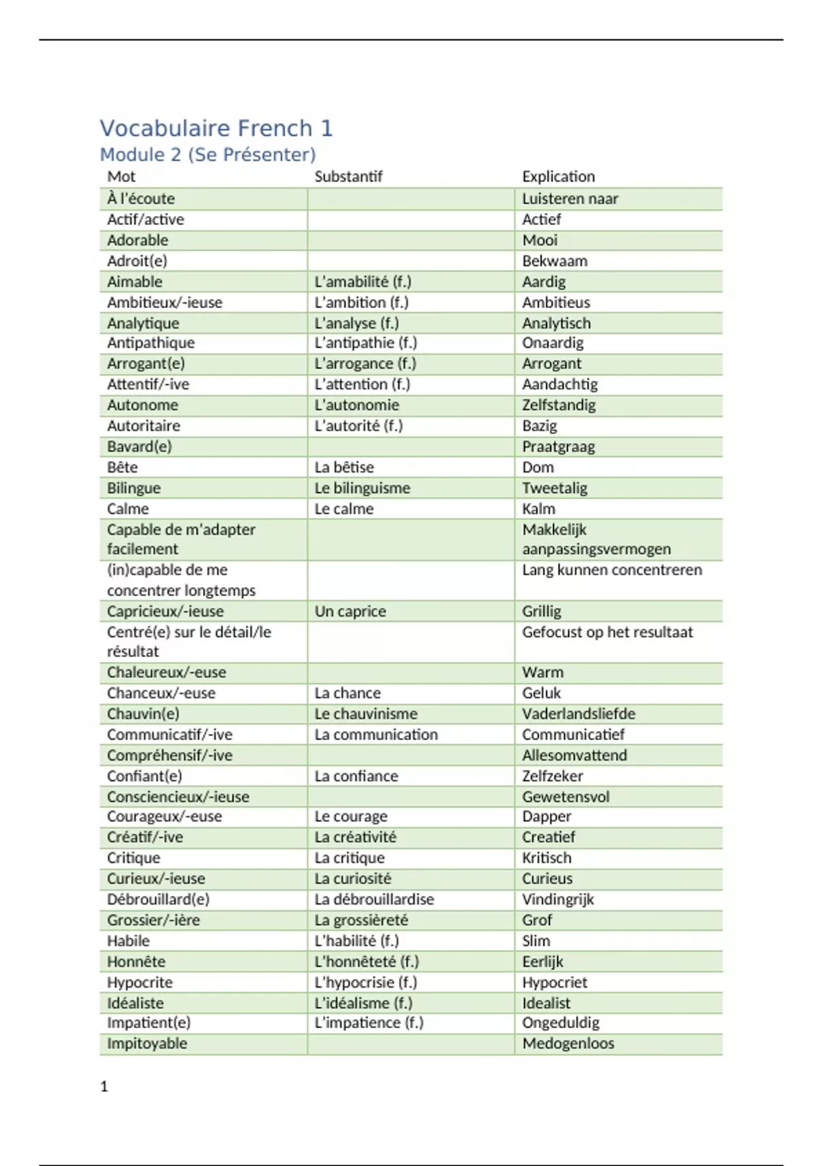 Vocabulaire French 1