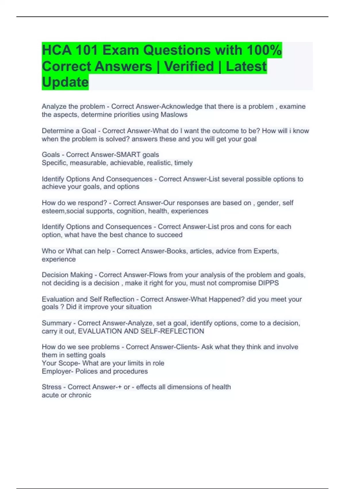 hca 101 exam questions with 100 correct answers