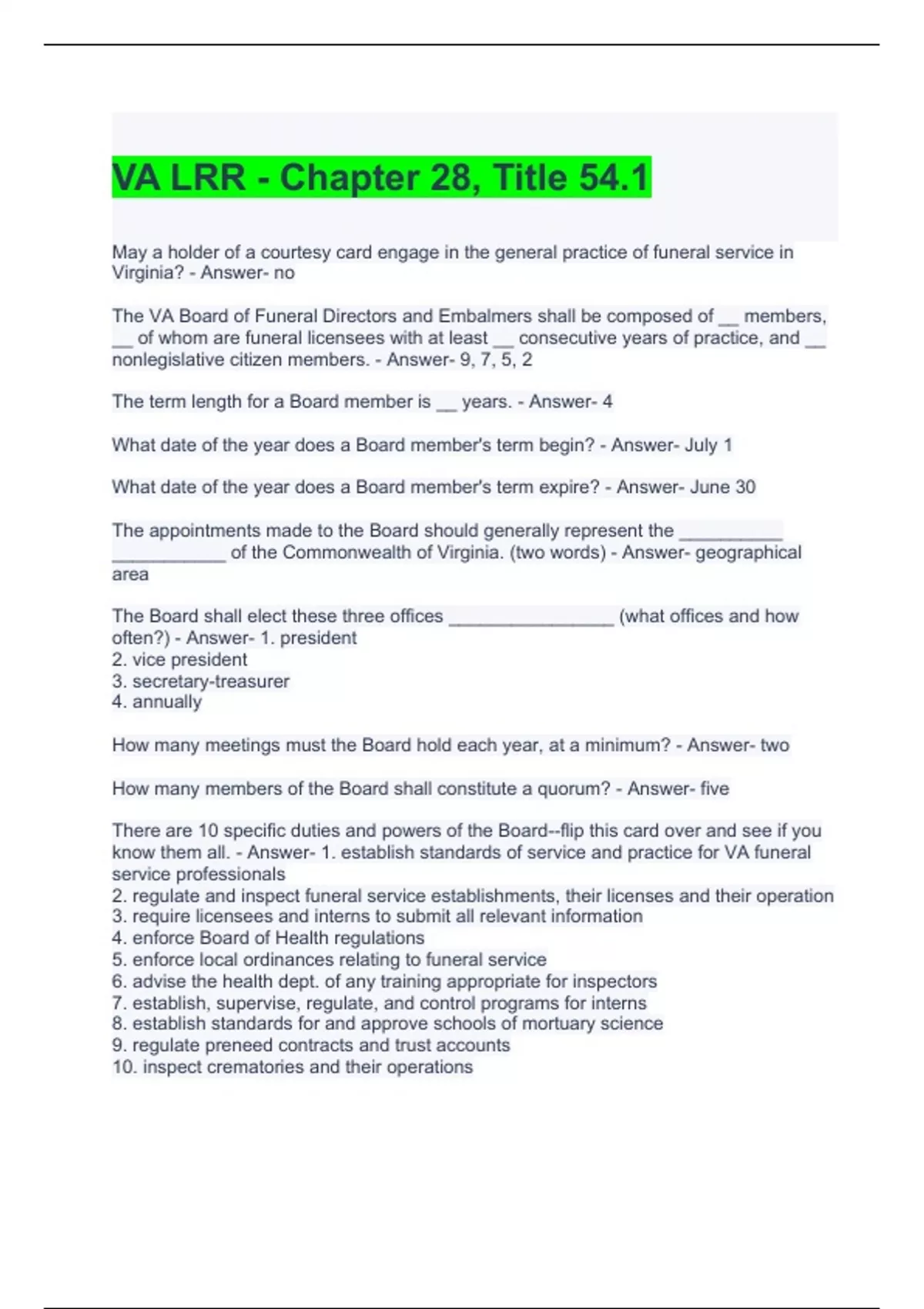 VA LRR - Chapter 28, Title 54.1 Exam Questions with correct Answers
