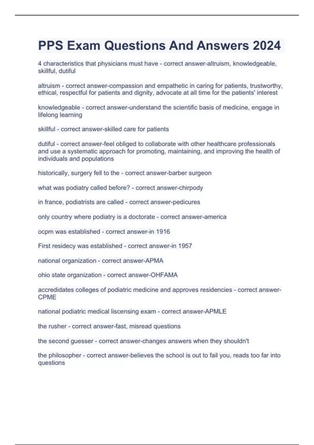 4 characteristics that physicians must have - correct answer-altruism, knowledgeable, skillful, dutiful