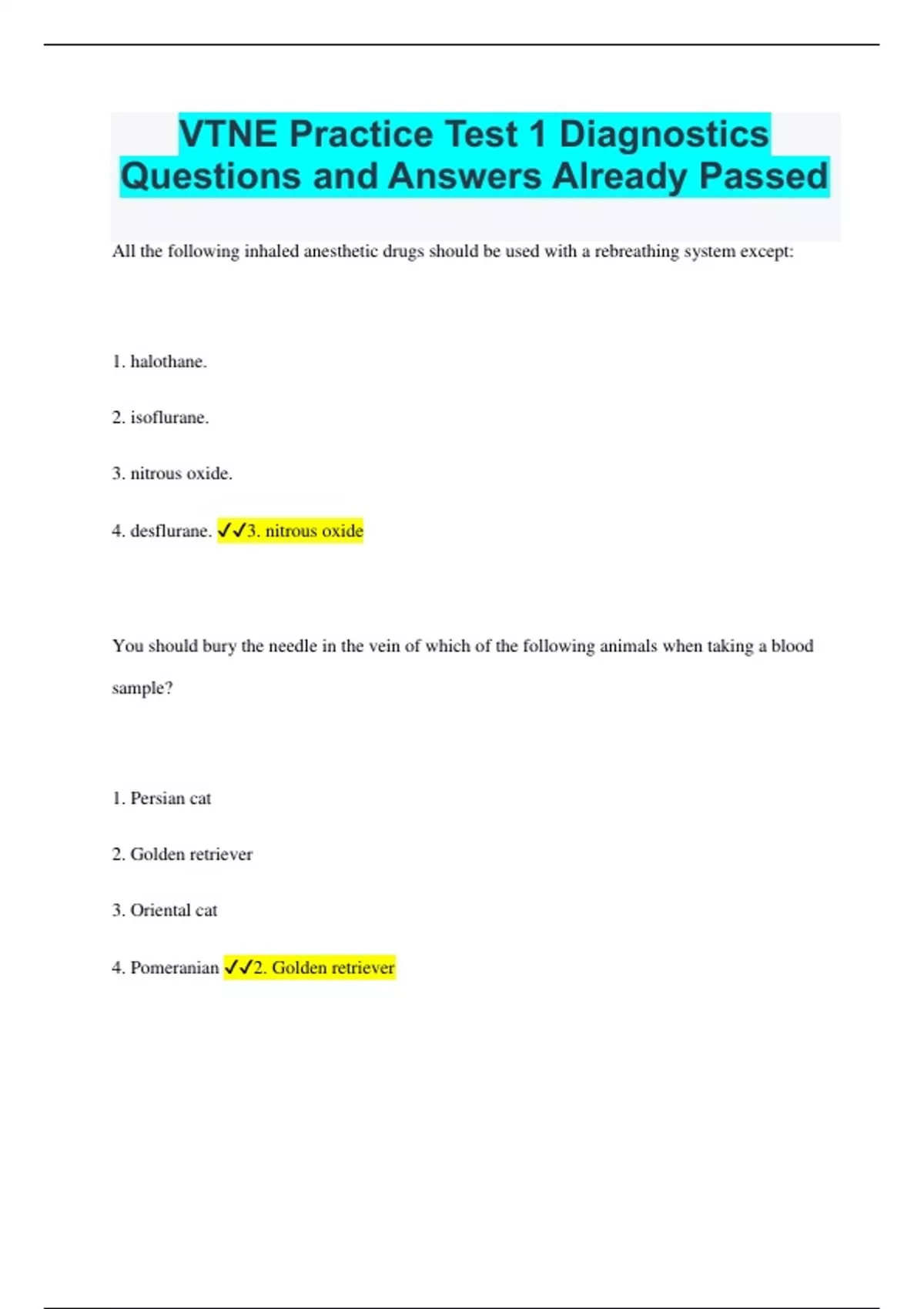 VTNE Practice Test 1 Diagnostics Questions and Answers Already Passed
