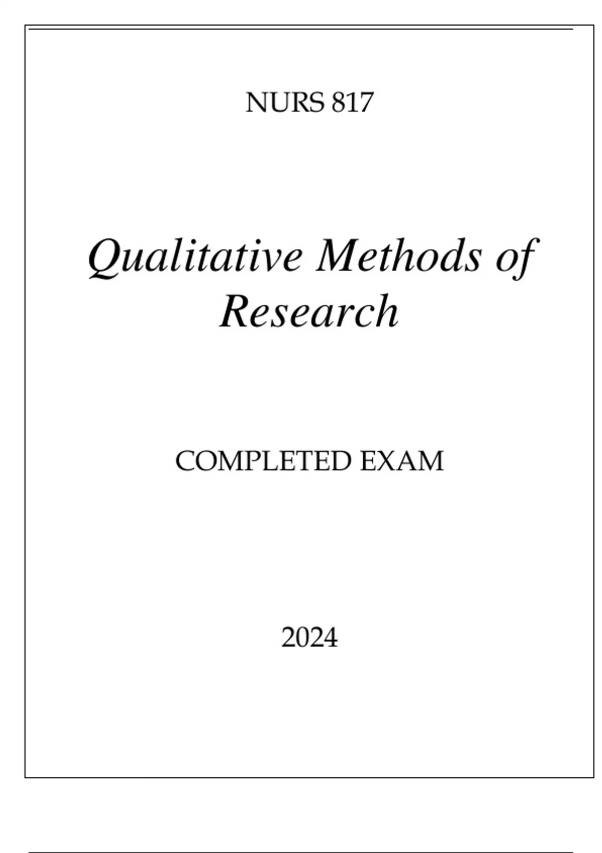NURS 817 QUALITATIVE METHODS OF RESEARCH COMPLETED EXAM 2024.
