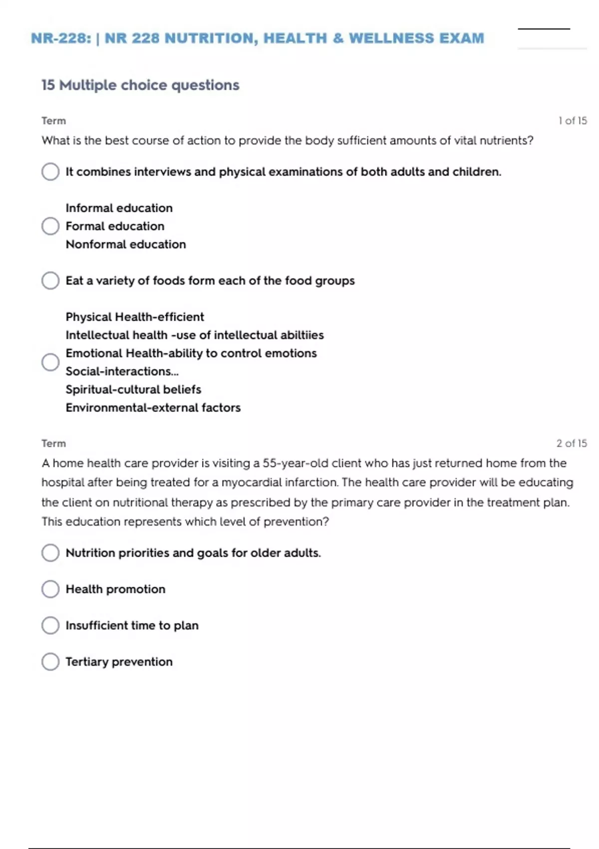 2024-2025 (COMPLETE) BUNDLE PACK /PACKAGE DEAL FOR NR-228: | NR 228 NUTRITION, HEALTH & WELLNESS | GRADED A+