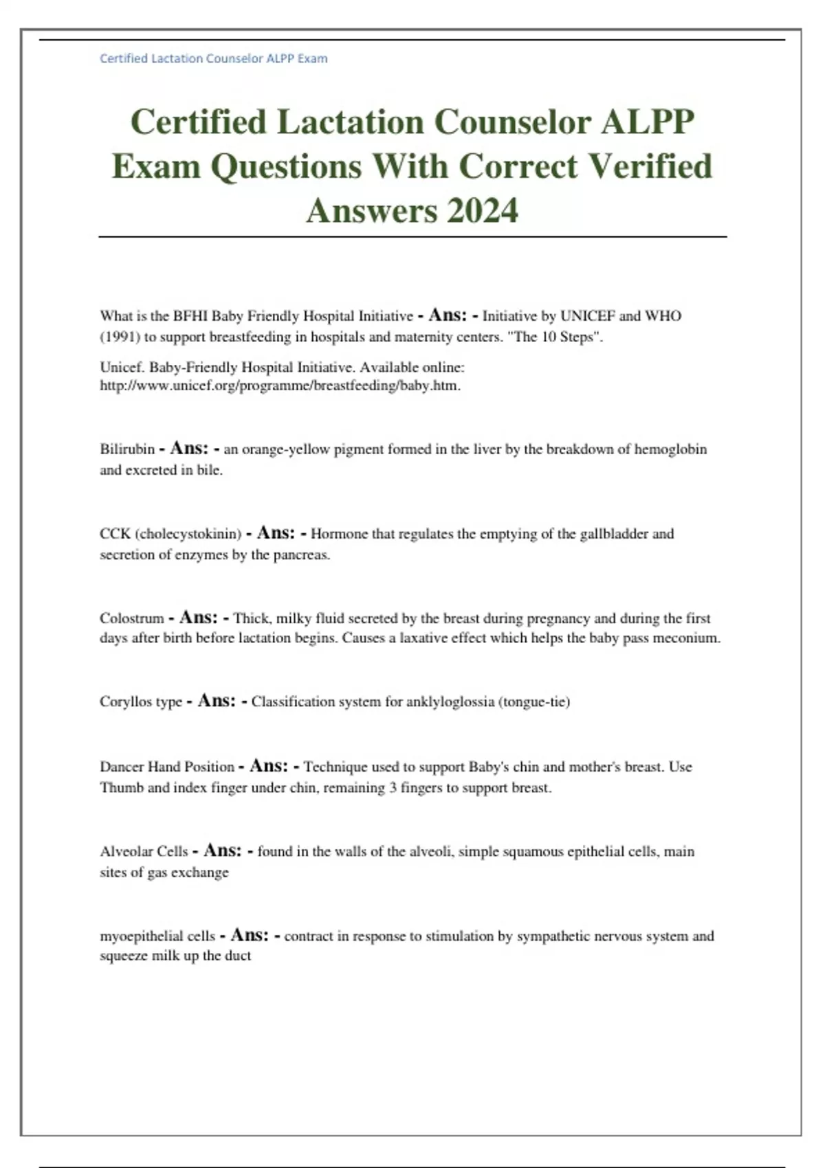 Certified Lactation Counselor ALPP Exam Questions With Correct Verified Answers 2024