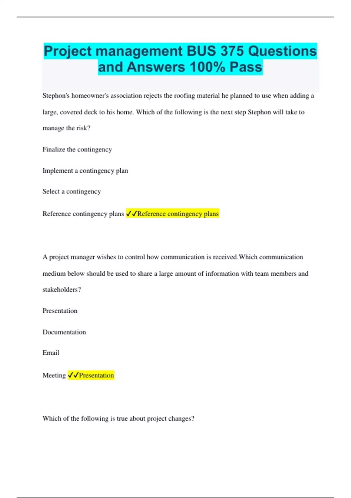 project management bus 375 questions and answers