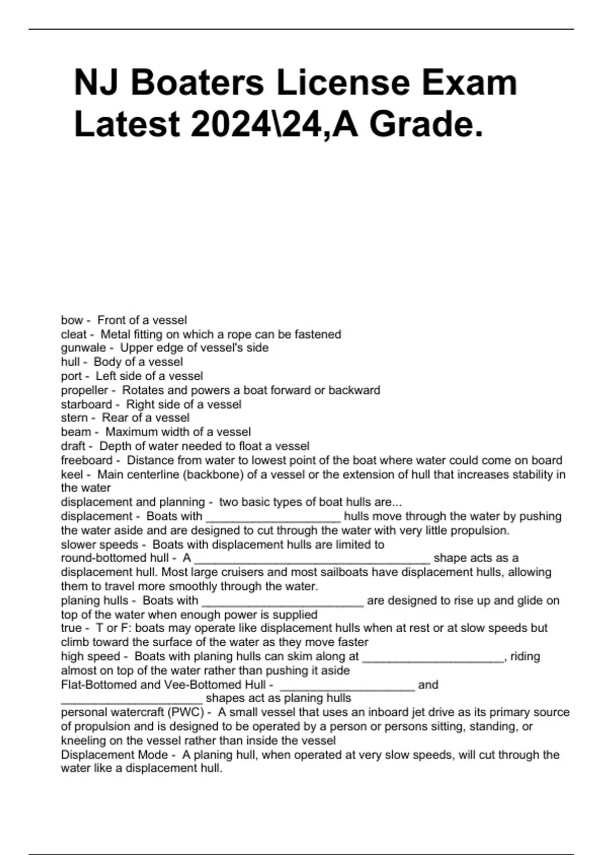 NJ Boaters License Exam Latest 202424,A Grade.