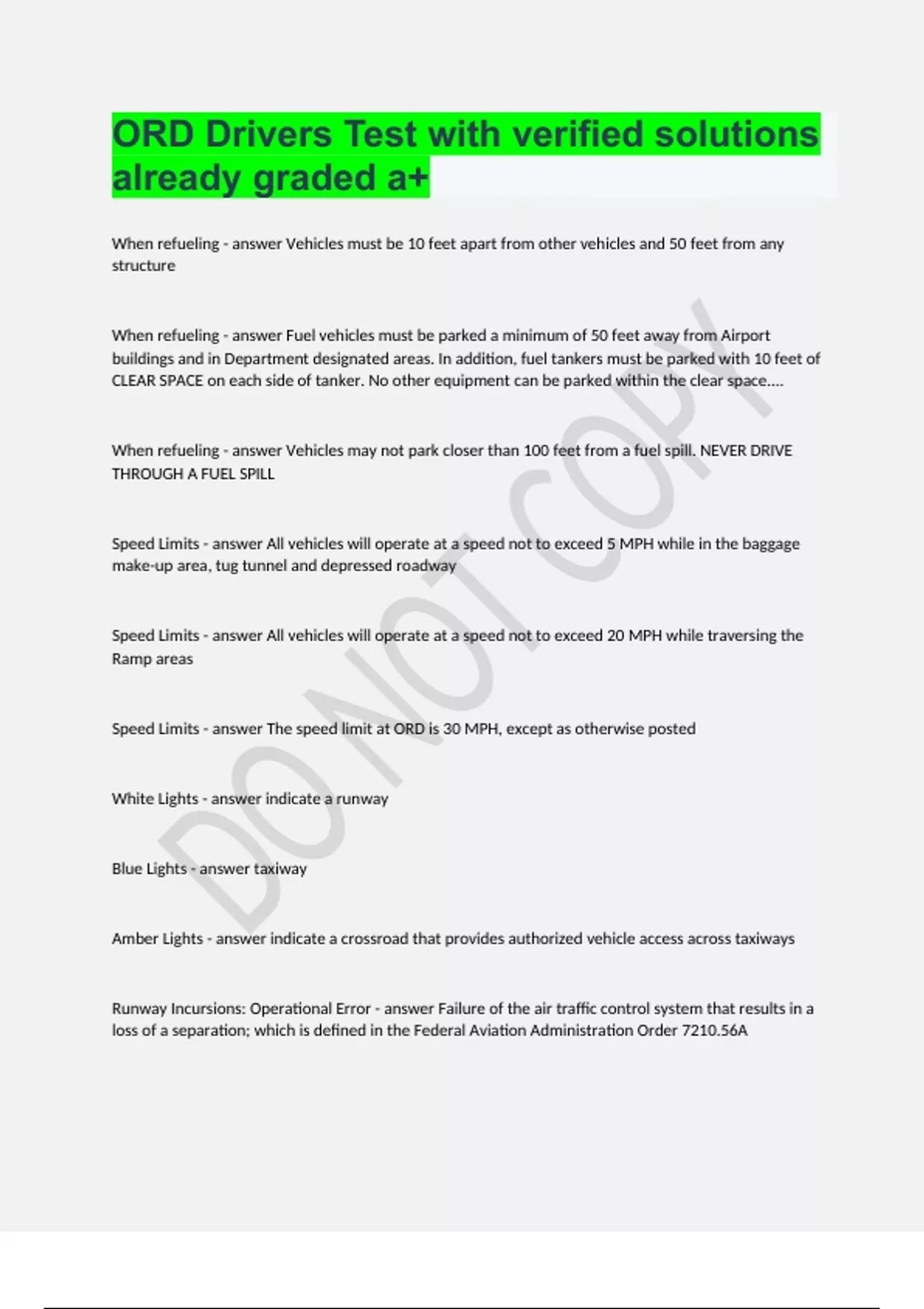 ORD Drivers Test with verified solutions already graded a+