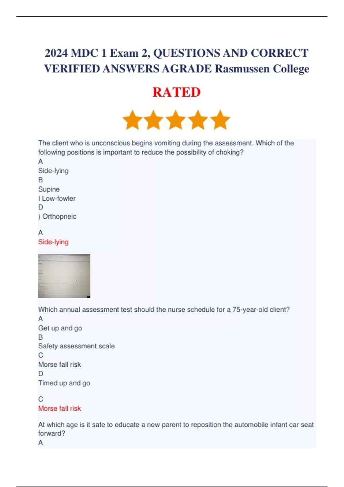 2024 MDC 1 Exam 2, QUESTIONS AND CORRECT VERIFIED ANSWERS AGRADE Rasmussen College