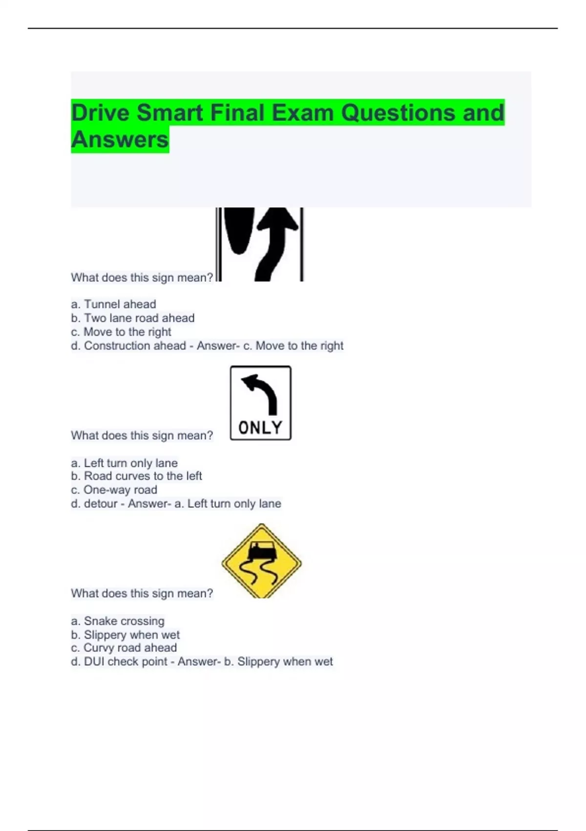 drive smart final exam questions and answers