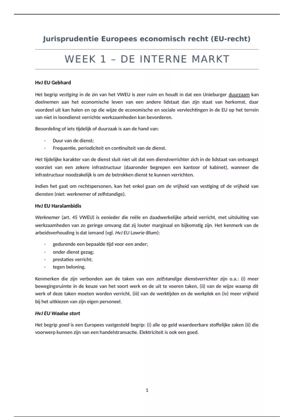 WEEK 1 – DE INTERNE MARKT