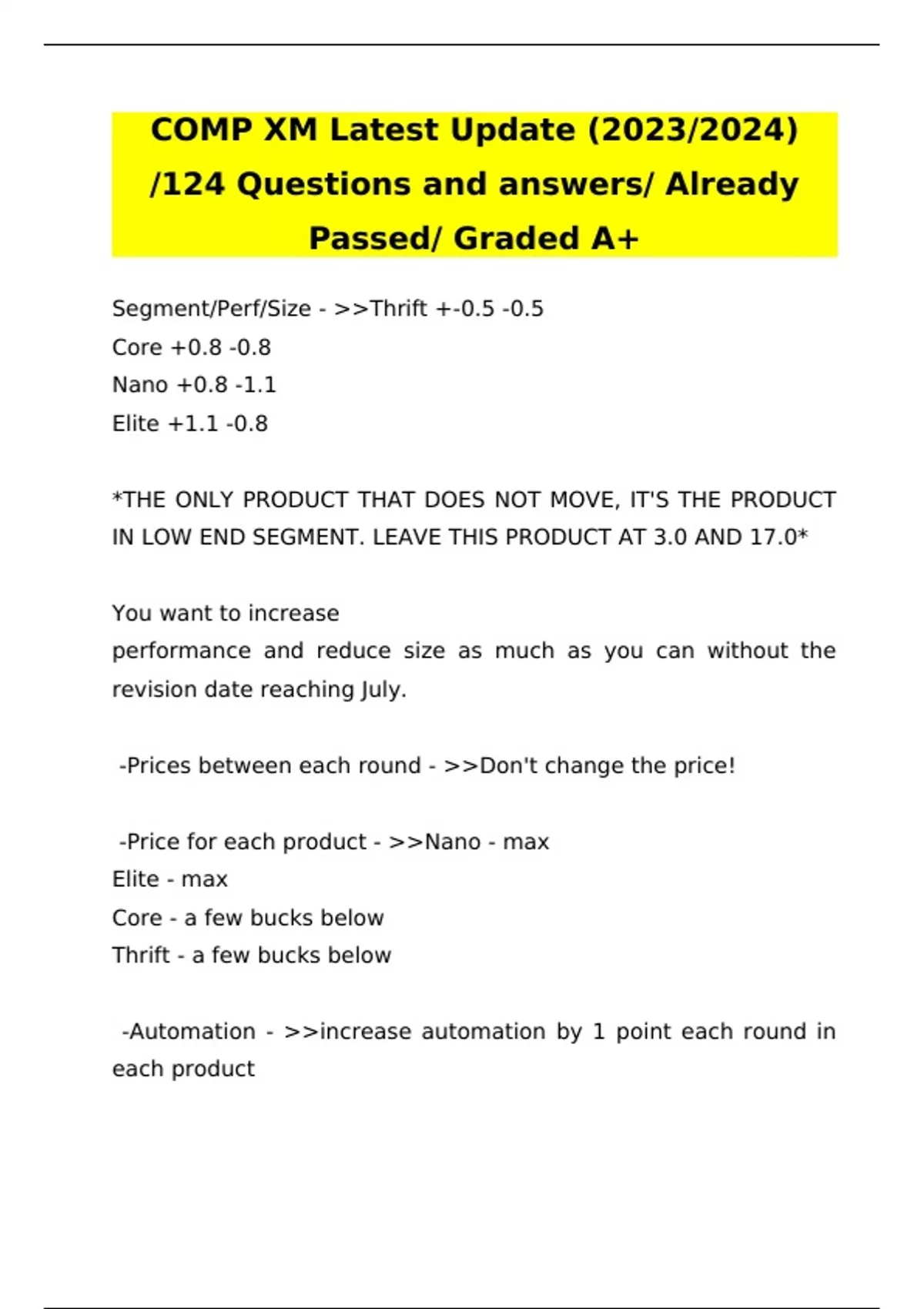 COMP XM Latest Update (2023/2024) /124 Questions and answers/ Already Passed/ Graded A+
