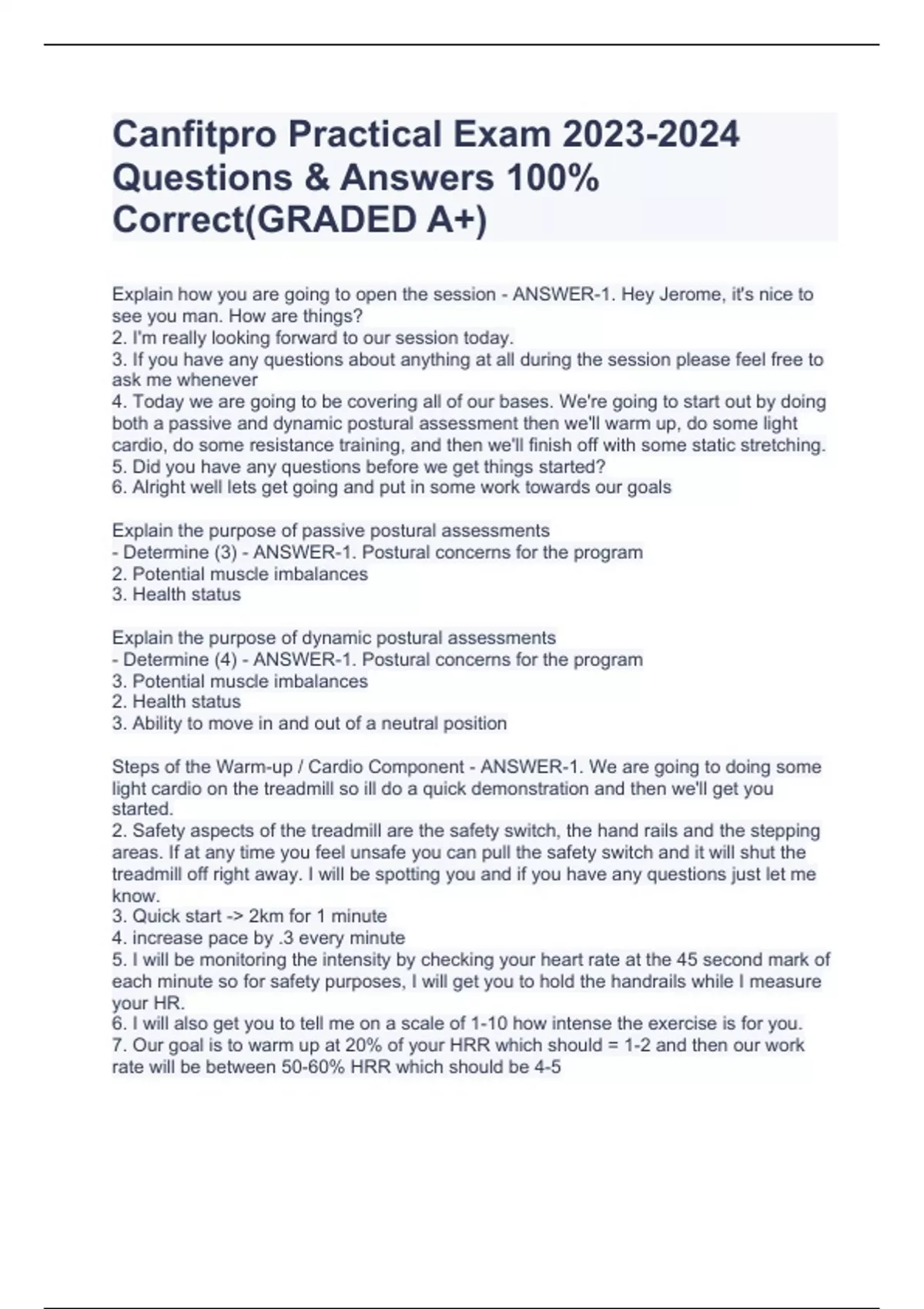 Canfitpro Practical Exam Questions & Answers 100% Correct(GRADED A+)
