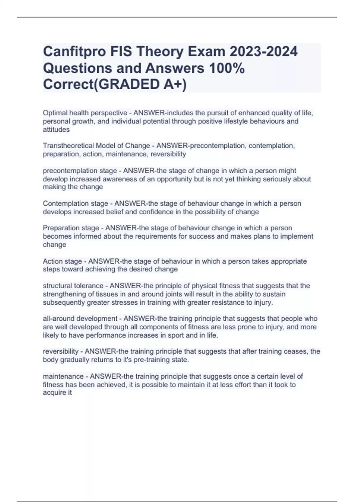 Canfitpro FIS Theory Exam Questions and Answers 100% Correct(GRADED A+)