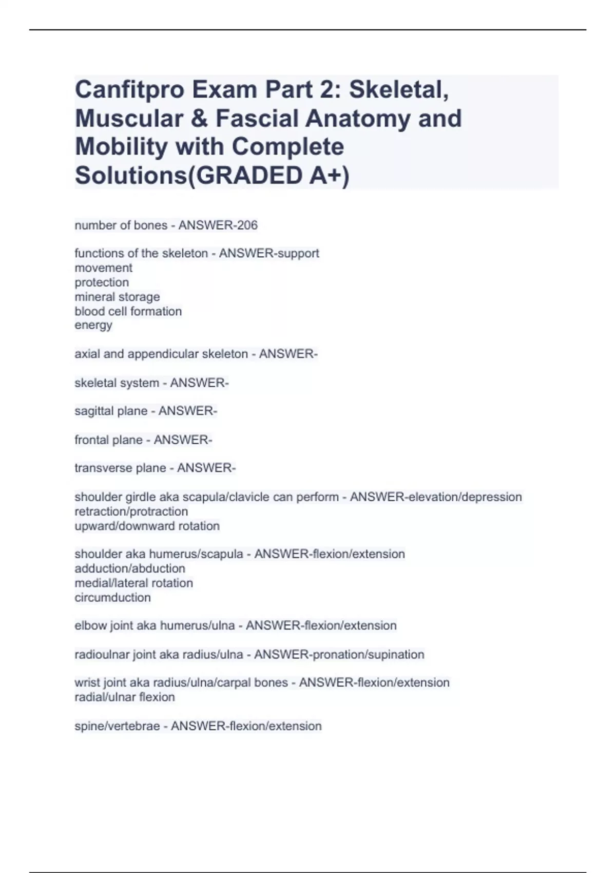 Canfitpro Exam Part 2: Skeletal, Muscular & Fascial Anatomy and Mobility with Complete Solutions(GRADED A+)