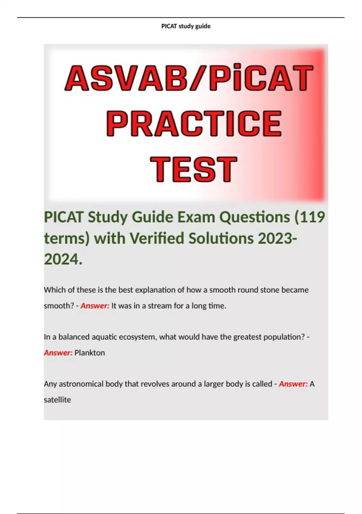 PICAT Study Guid Exm Qustions With