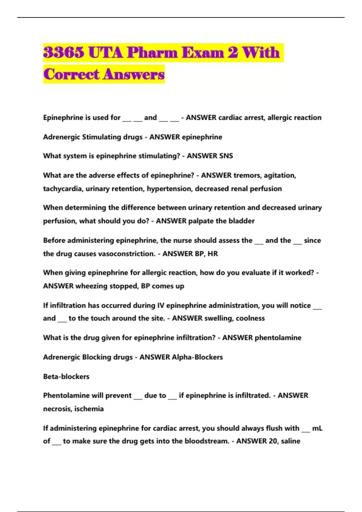 3365 UTA Pharm Exam 2 With Correct Answers