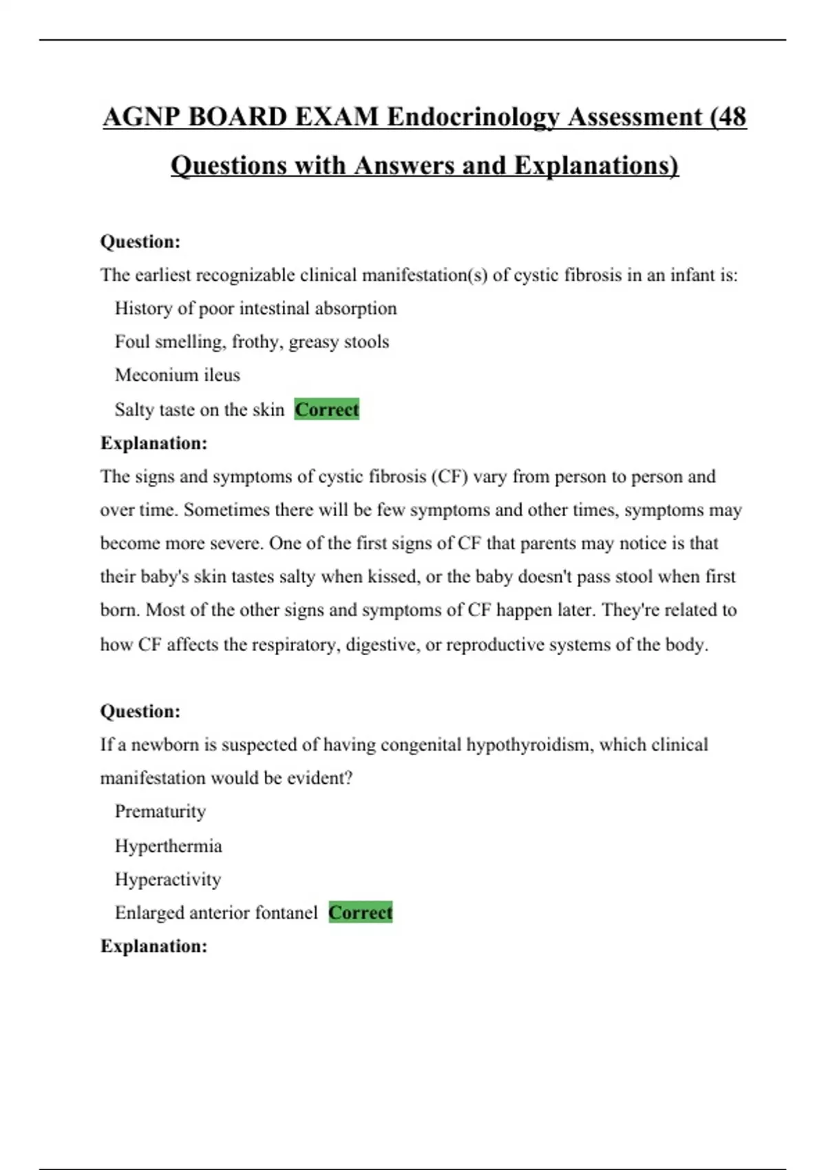 AGNP BOARD EXAM Endocrinology Assessment (48 Questions with Answers and Explanations) This document contains Well elaborated 107 questions and answers plus clear explanations to support each answer given on AGNP Board exam. The paper covers Endocrinology Assessment together with insightful explanation on terms and even more.