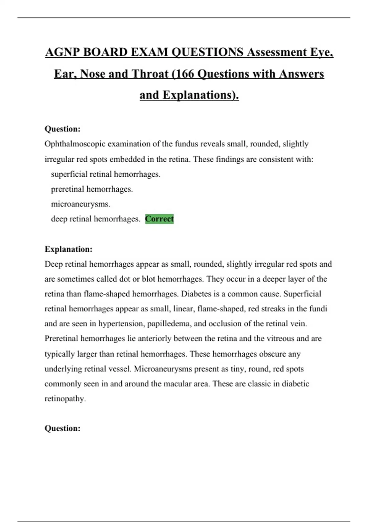 AGNP BOARD EXAM QUESTIONS Assessment Eye, Ear, Nose and Throat (166 Questions with Answers and Explanations)