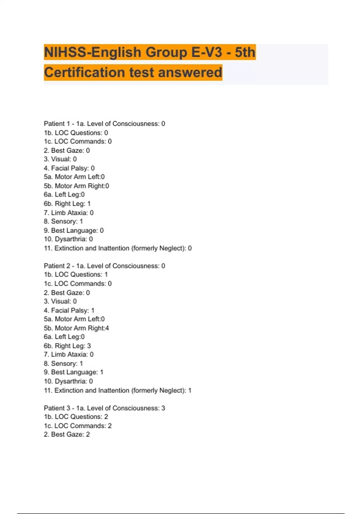 NIHSS-English Group E-V3 - 5th Certification test answered