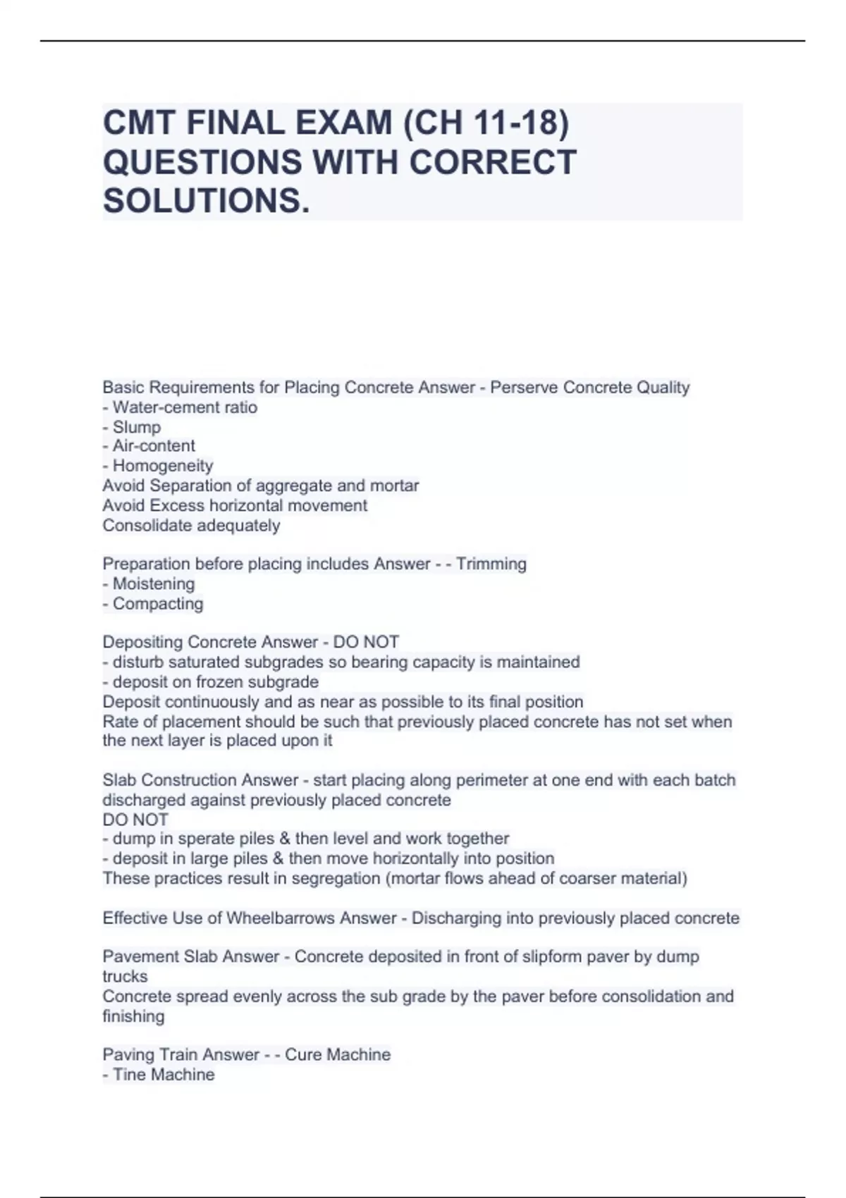 CMT FINAL EXAM (CH 11-18) QUESTIONS WITH CORRECT SOLUTIONS.