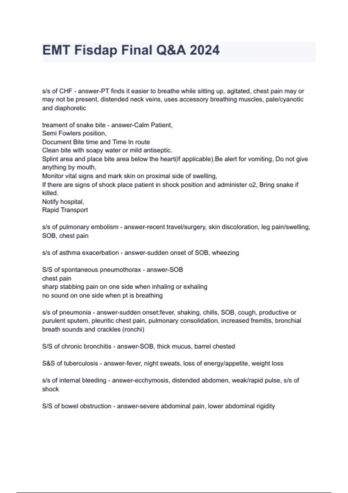 - EMT Fisdap Finl Q&A 2024