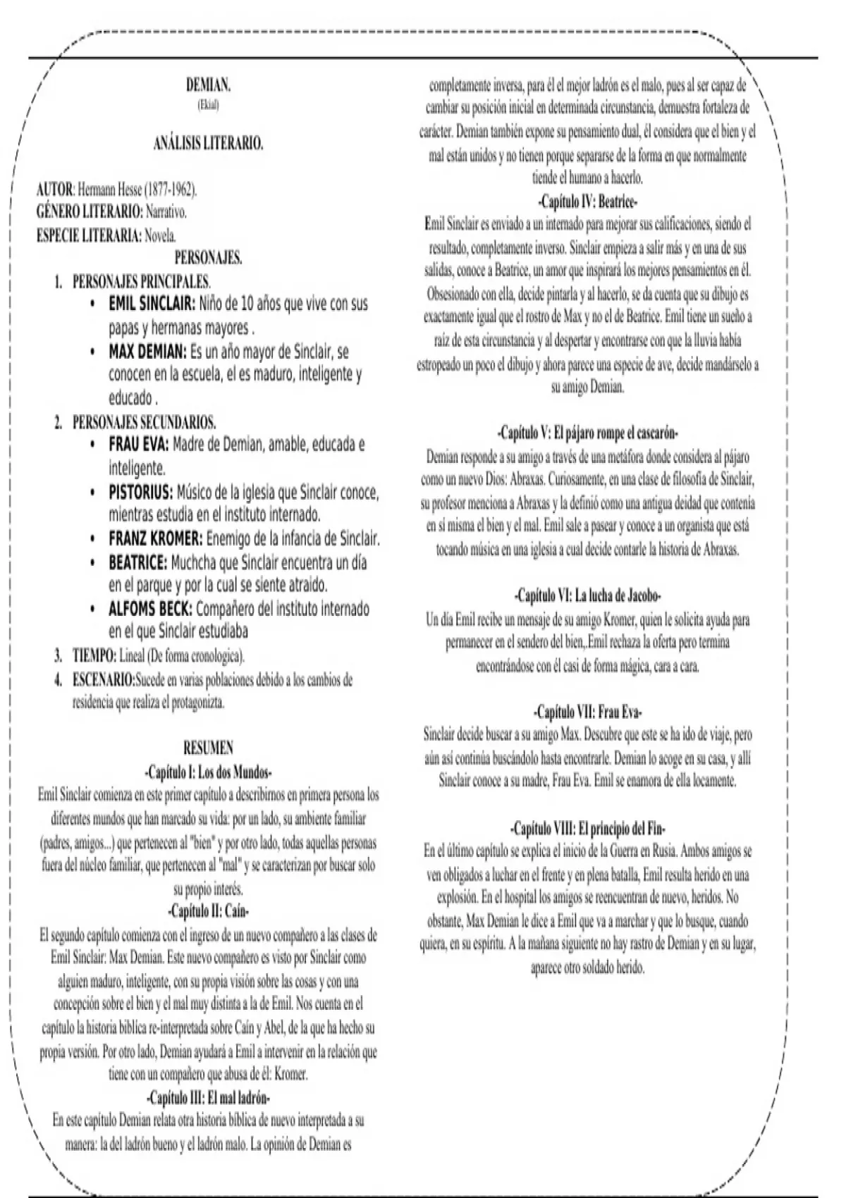 -Capítulo II: Caín- obstante, Max Demian le dice a Emil que va a marchar y que lo busque, cuando