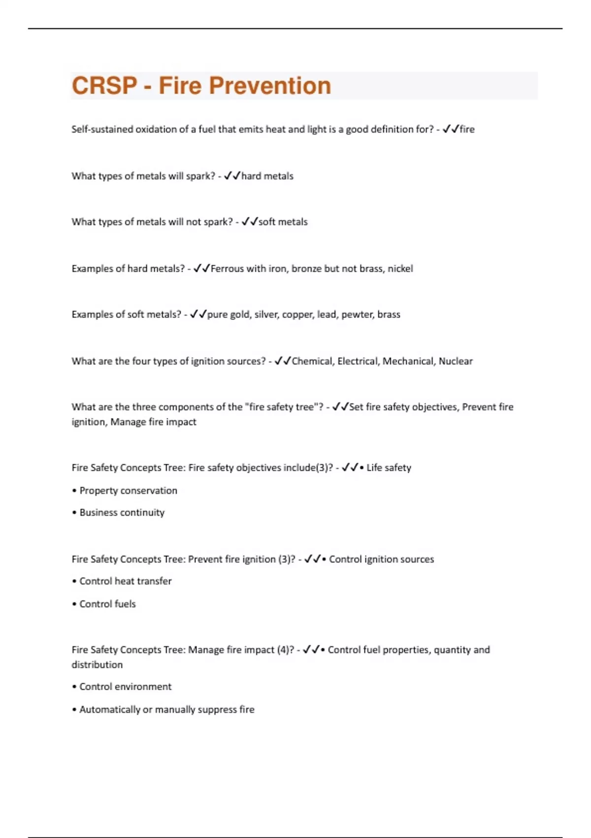 CRSP - Fire Prevention Questions and Answers(A+ Solution guide)