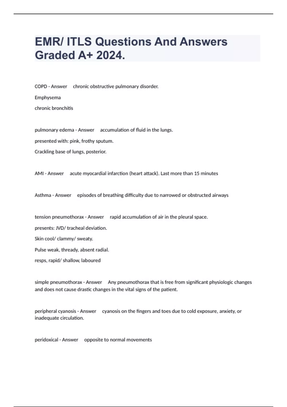 EMR/ ITLS Questions And Answers Graded A+ 2024.