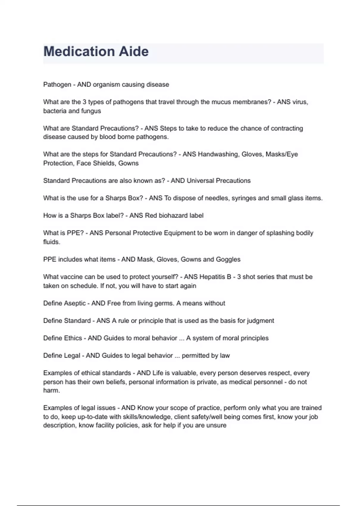Medication Aide Test 2024 Questions With Verified Solutions Guaranteed A+.
