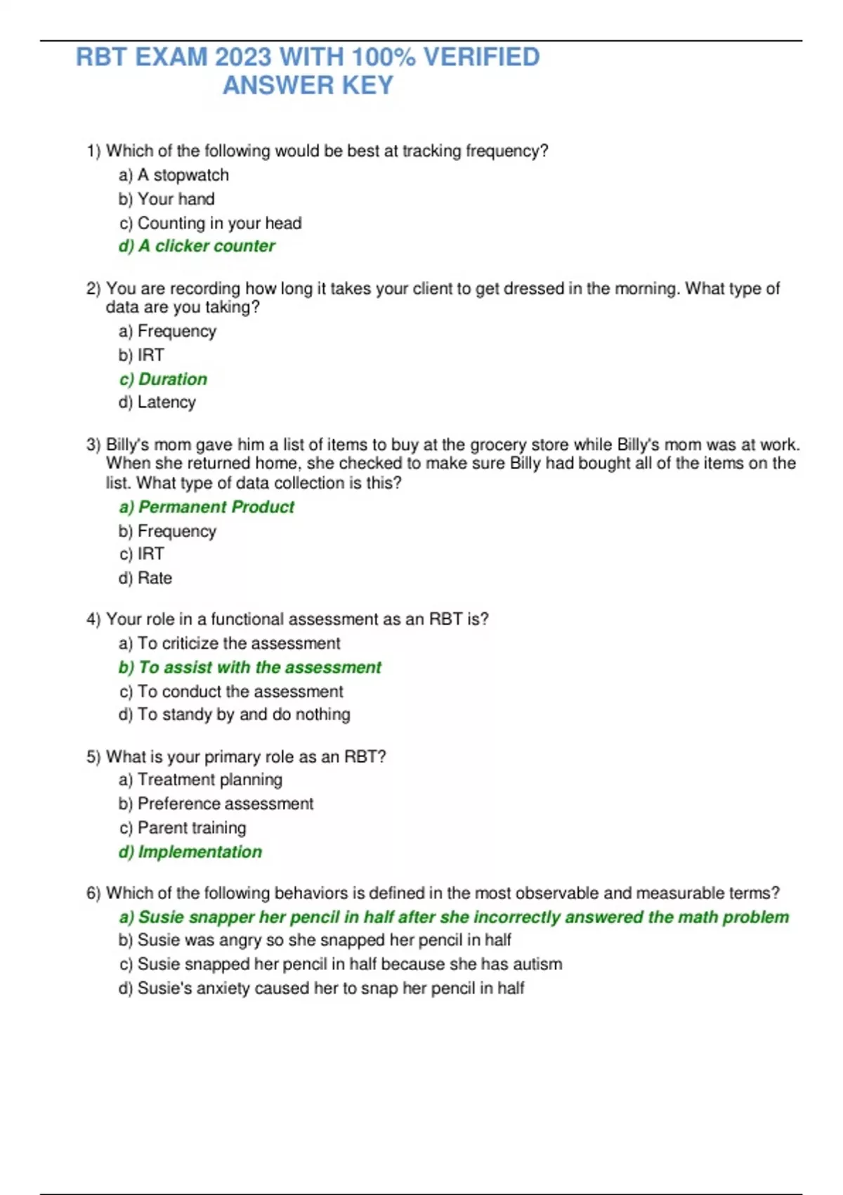RBT EXAM 2023 WITH 100% VERIFIED ANSWER KEY