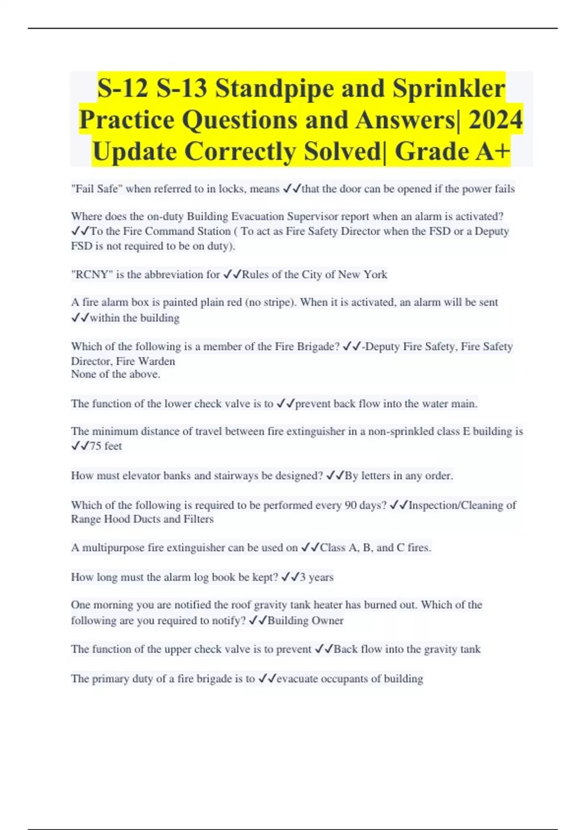 S-12 S-13 Standpipe and Sprinkler Practice Questions and Answers| 2024 Update Correctly Solved| Grade A+
