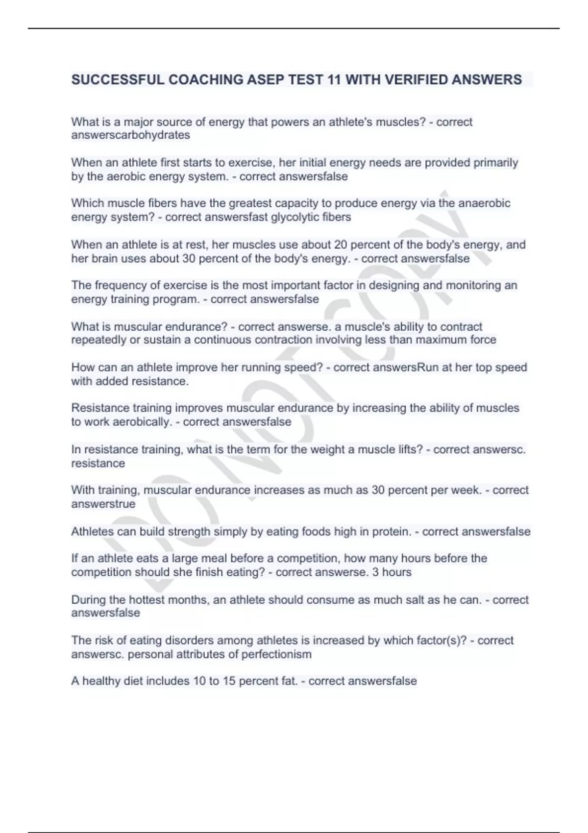 SUCCESSFUL COACHING ASEP TEST 11 WITH VERIFIED ANSWERS.